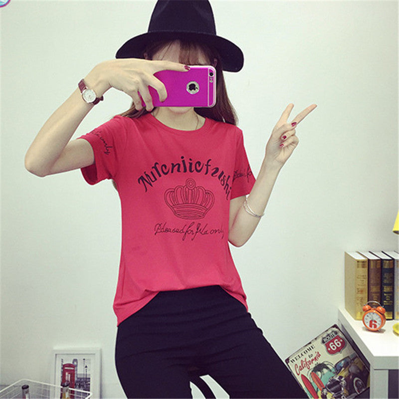 2016 New Women clothing T shirts Letter Print t-shirt Women Crown Top Short Sleeve Female Large Size tops 71074