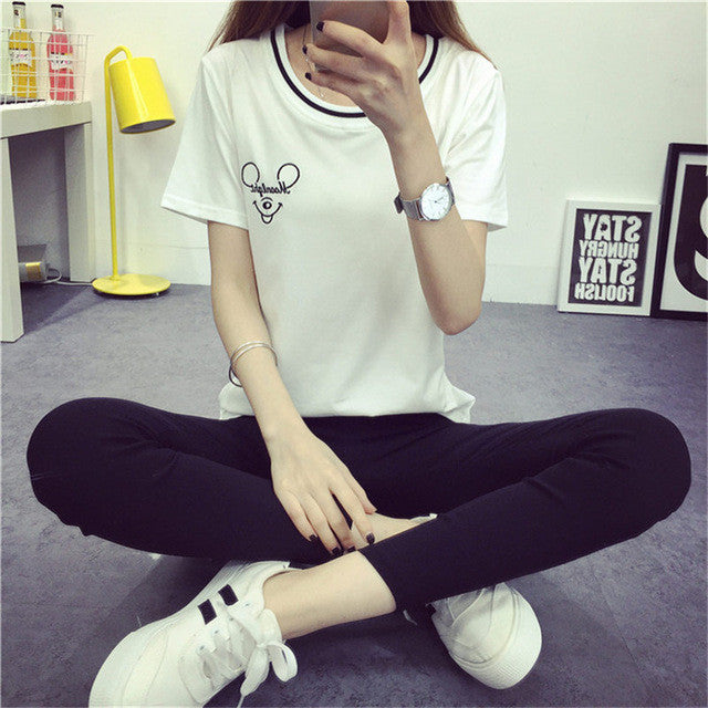 2016 New Women T shirts clothing Letter Print t-shirt Women Tee Short Sleeve Female Plus Size Carton Tops 71603