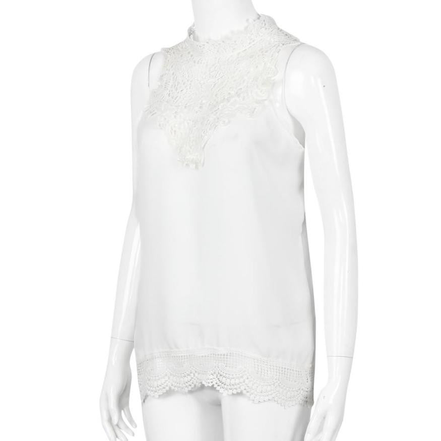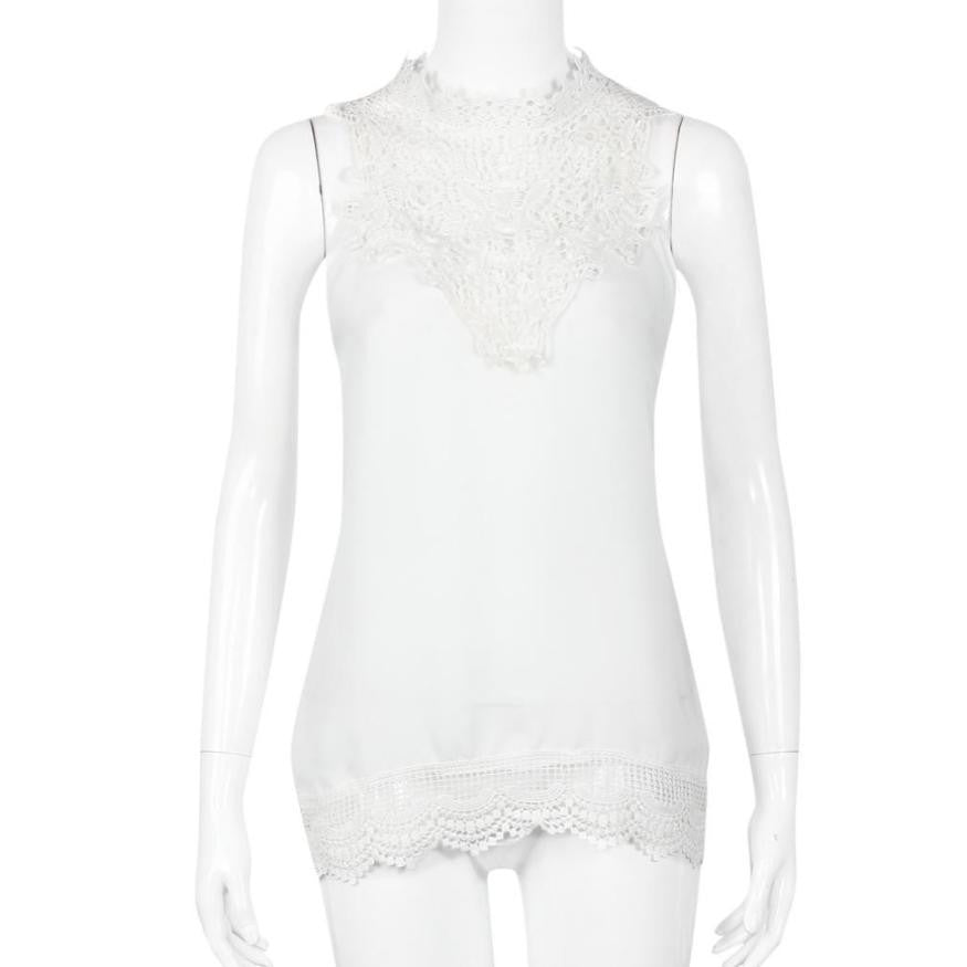 2016 Plus Size S-4XL Women Chiffon Lace Sleeveless Tops Women Shirts O Neck Summer Casual Loose Women Clothes Vetement Femme