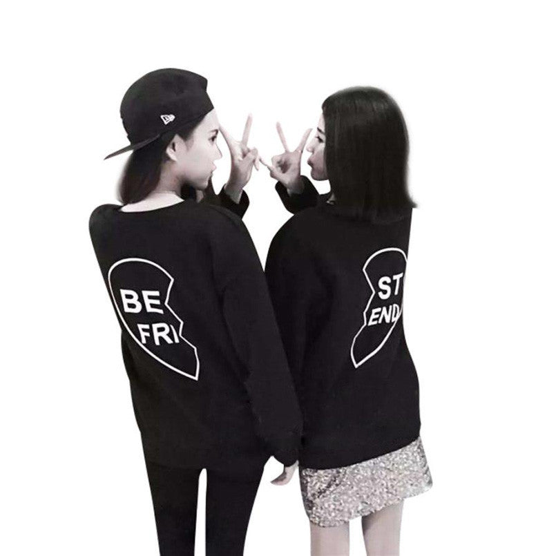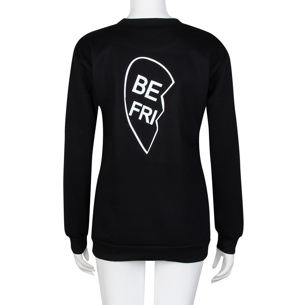 2016 Popular Selling Women BE FRI ST END Letter Print T-shirt For Girls Spring Autumn Long Sleeve Hooded Best Friend Tees Tops