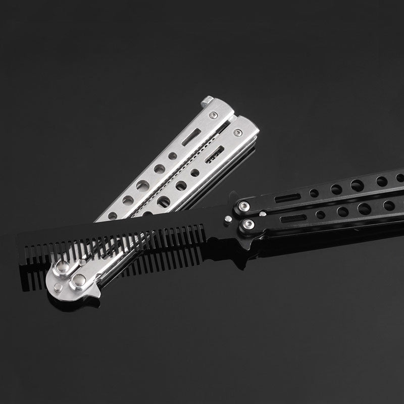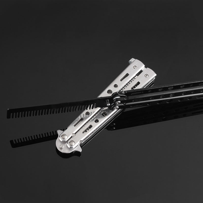 2016 Pro Salon Stainless Steel Folding Practice Training Butterfly Balisong Style Comb Tool