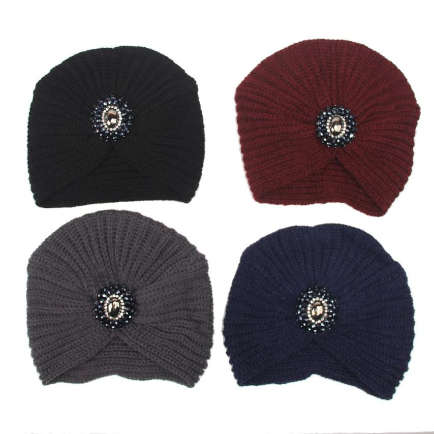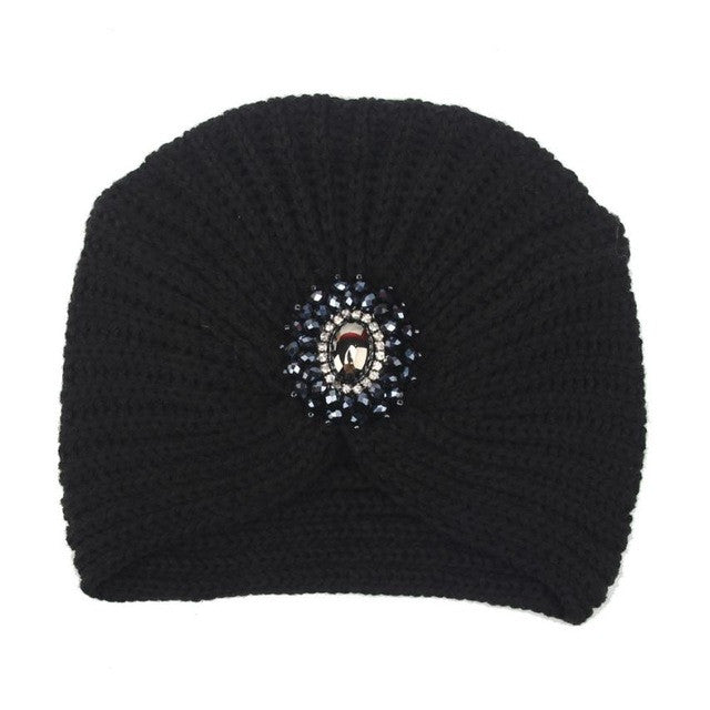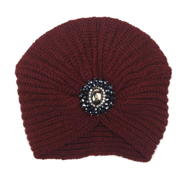 2016 Retro Crystal Womens Winter Knitting Warm Crochet Hats Winter Hats For Women Female Headdress Caps Beanies Bonnet