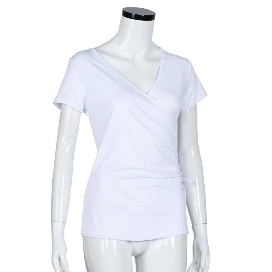 2016 Summer Fashion Women Top Tees Short Sleeve V Neck T-shirt Casual Tee Shirt Femme Top Camiseta Feminina 2 Colors YE