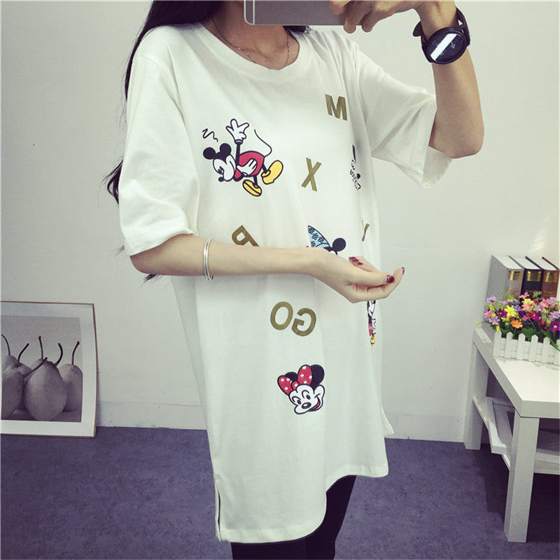 2016 Summer New Letter Mouse Letter Print Women T Shirt Fashion Mice Print Woman Long Tops O-Neck Short Sleeve t-shirt 71427