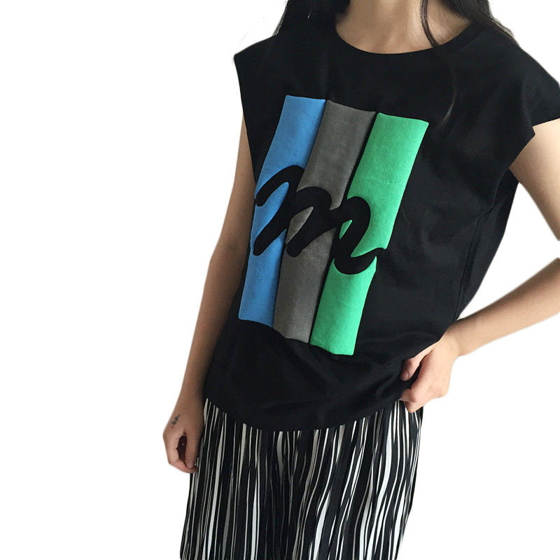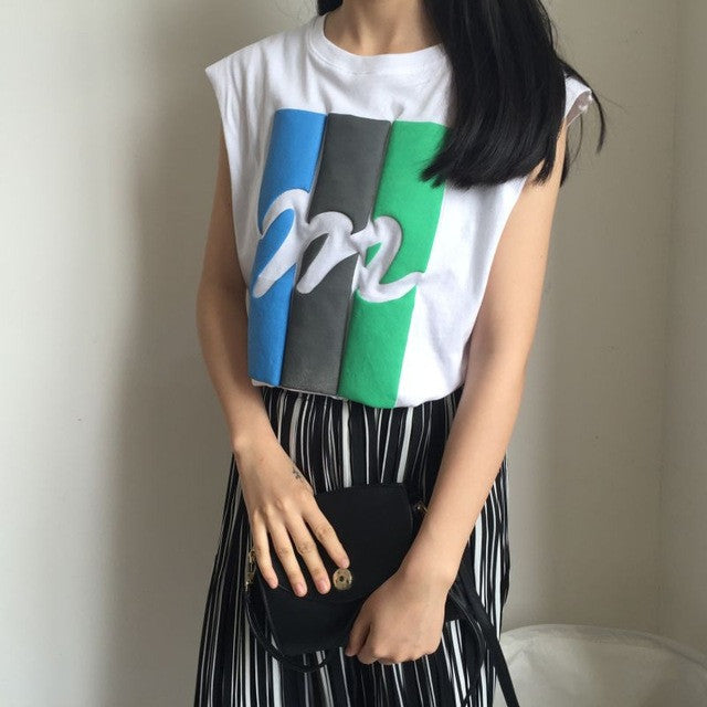 2016 Summer New Women T-shirt Fashion Letter M Print Sleeveless Women Casual Tops Tees College Wild Girl T Shirt 71186