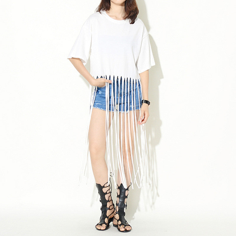 2016 Summer Women Shirt O Neck Short Sleeve Casual shirt Fashion Long Tassels Batwing Sleeve European Streetwear Blouses 71243