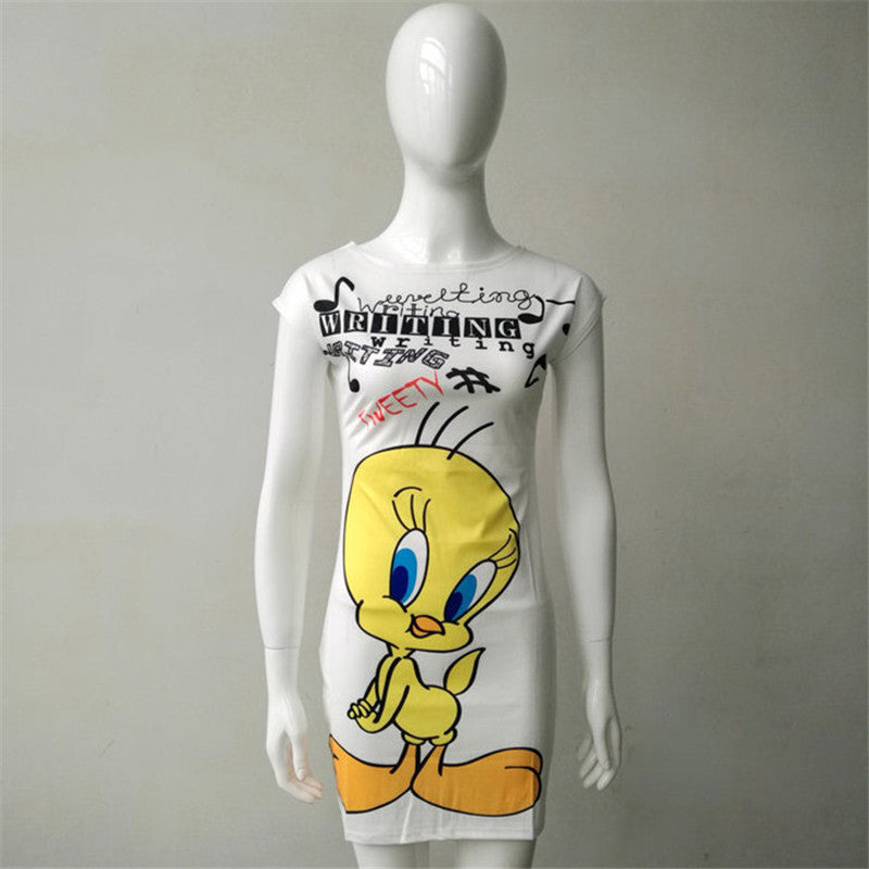 2016 Vestidos Plus Size Sexy Pencil Knee-Length Dress Brief Sleeveless O-neck Animal Letter Duck Print Women Dresses 71560