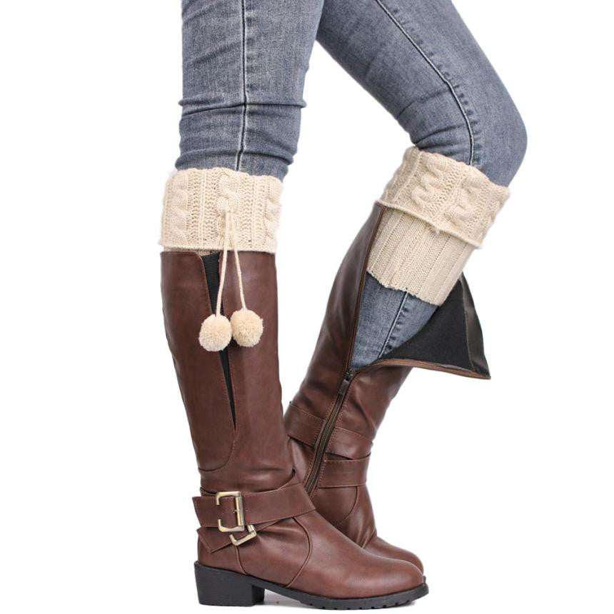 2016 Winter New Leg Warm For Women Girls Hemp Flowers Flanging Knitted Crochet Sock Leg Plush Cover Button Trim Socks Girls