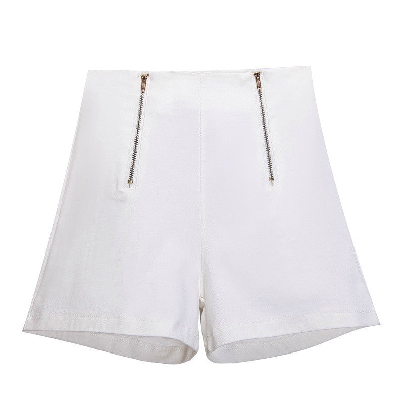2016 Women Short Pants Elasticity Solid High Waist Double zip Casual Hot Pants Pantaloncini#B630