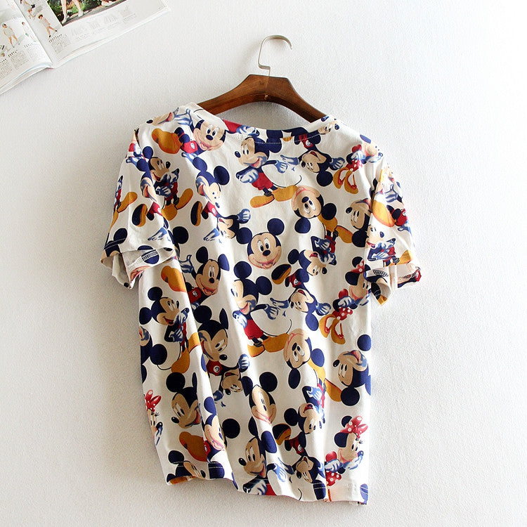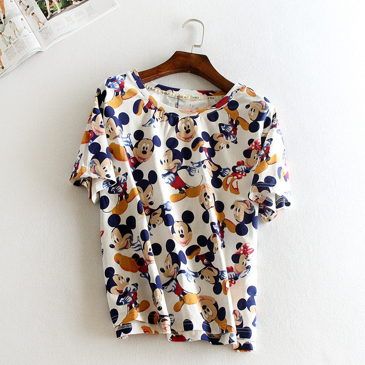 2016 Women Summer Print T Shirt Casual Animal Print Woman Mouse Print Tops O-Neck Short Sleeve t-shirt 71438