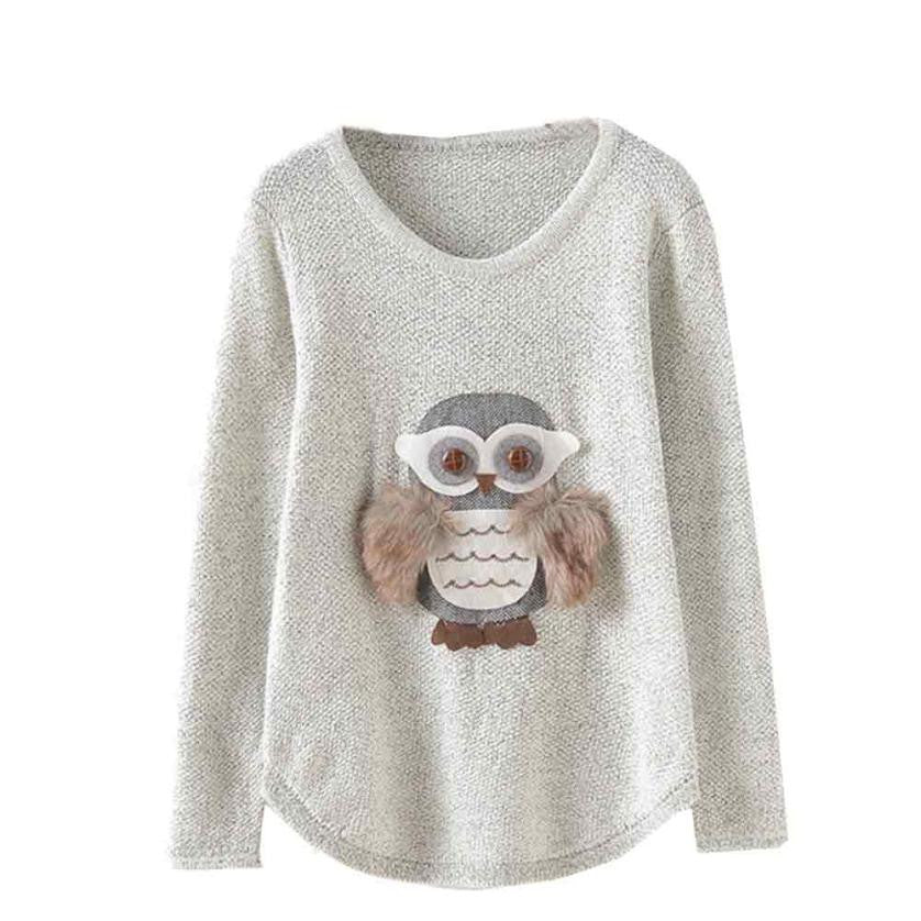 2016 Women Sweaters Owl Pattern Autumn Winter Fashion Loose Grey O Neck Long Sleeve Knittwear Pullovers Clothing Pull femme #WY