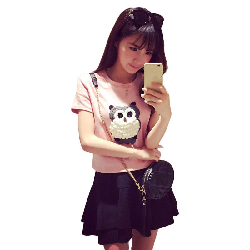 2016 Women T-shirt 3D Print Summer Female T Shirt Fashion Cute Owl Print Short Sleeve O Neck Women Sweet Top Tees 71181