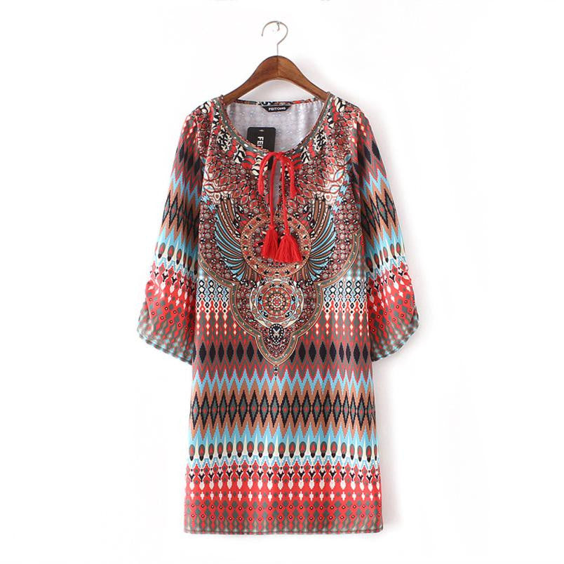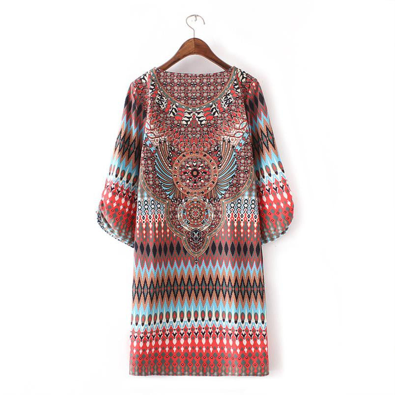 2016 Womens Dresses Sexy V Neck Print Half Sleeve Tunic Loose Casual Women Beach Boho Dress robe femme YU