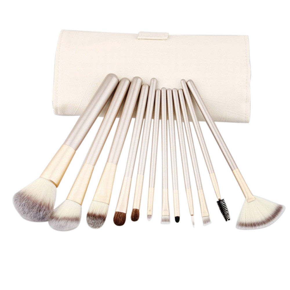 2017 12PCS Professional Makeup brushes set Concealer Powder Fondation Eyeshadow Makeup tools+PU Leather Cosmetic bag Beige