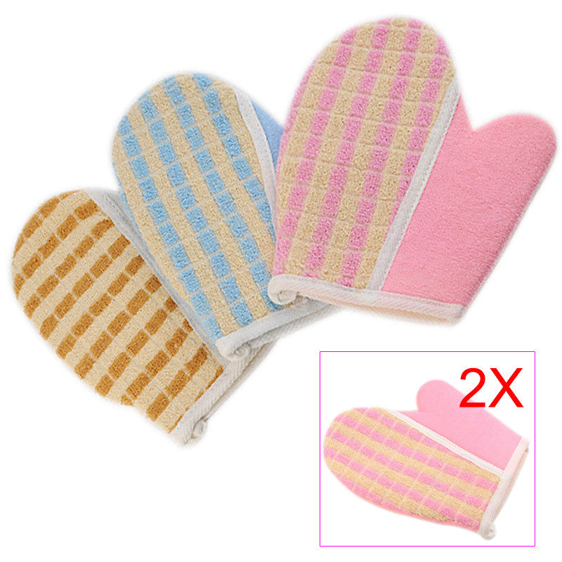 2017 2pcs New Lovely Shower Scrubber Back Scrub Exfoliating Body Massage Sponge Bath Gloves Sale