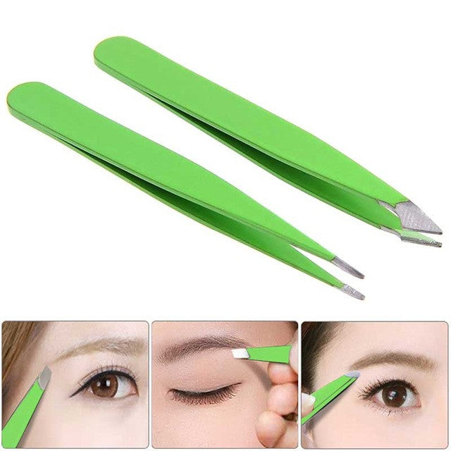 2017 2Pcs New Proffesional Sanitary Stainless Steel Slant Tip Hair Removal Eyebrow Tweezer 88