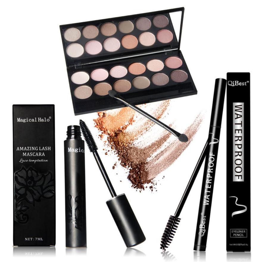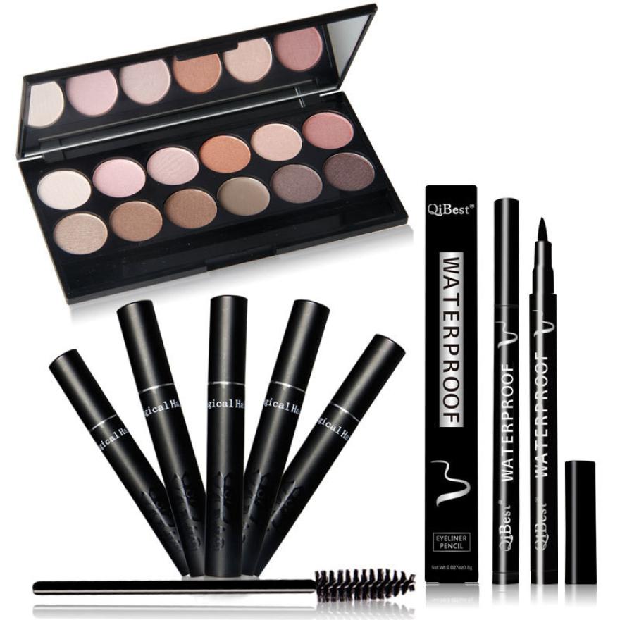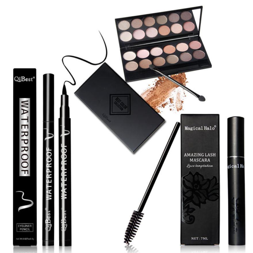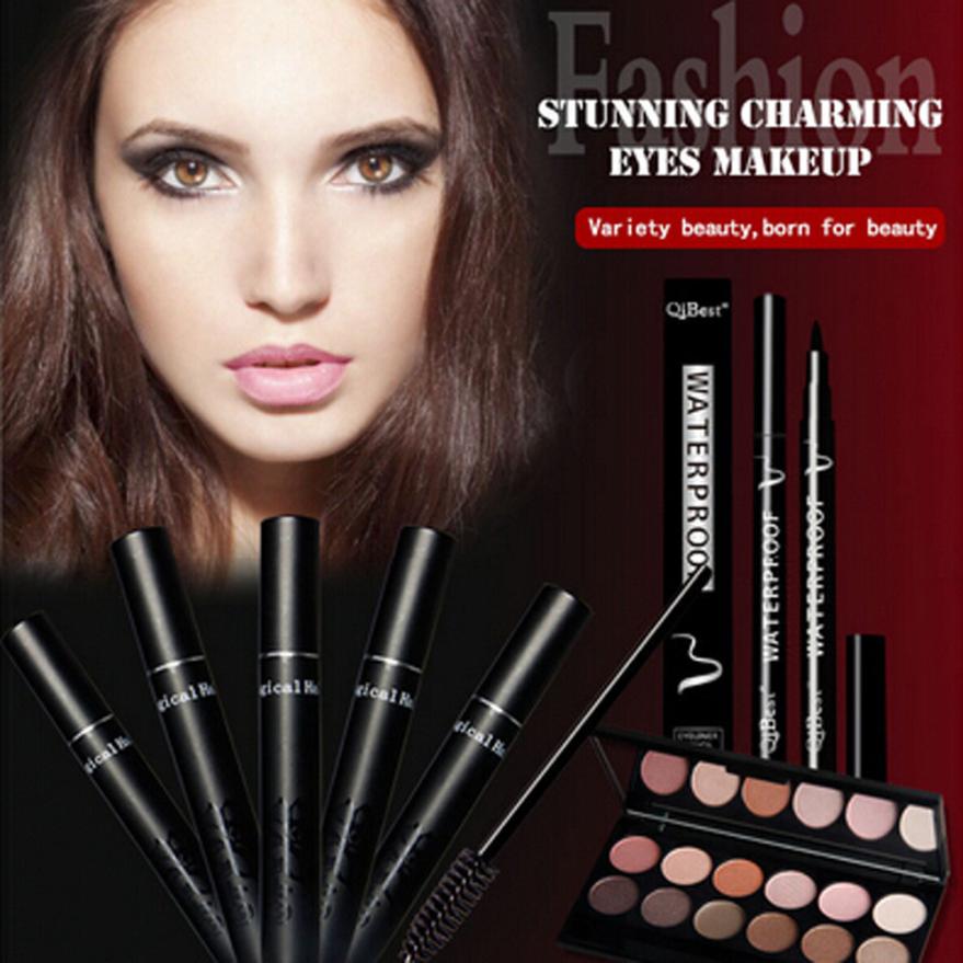 Realer modification of the eye contour Qibest perfect combination of eye makeup Eye Shadow + Mascara + Eyeliner Anne